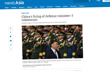 Chad Sbragia was interviewed for Nikkei Asia on how the removal of the Chinese Defense Minister impacts U.S.-China defense talks.