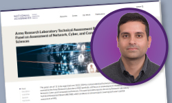 Arun Maiya was selected to participate on the 2024 Panel on Assessment of Network, Cyber and Computational Sciences, hosted by the National Academies. Arun and the other panelists reviewed technical competencies covered by the Army Research Laboratory’s research and development portfolio. The event was held August 6-8 at the Adelphi Laboratory Center.